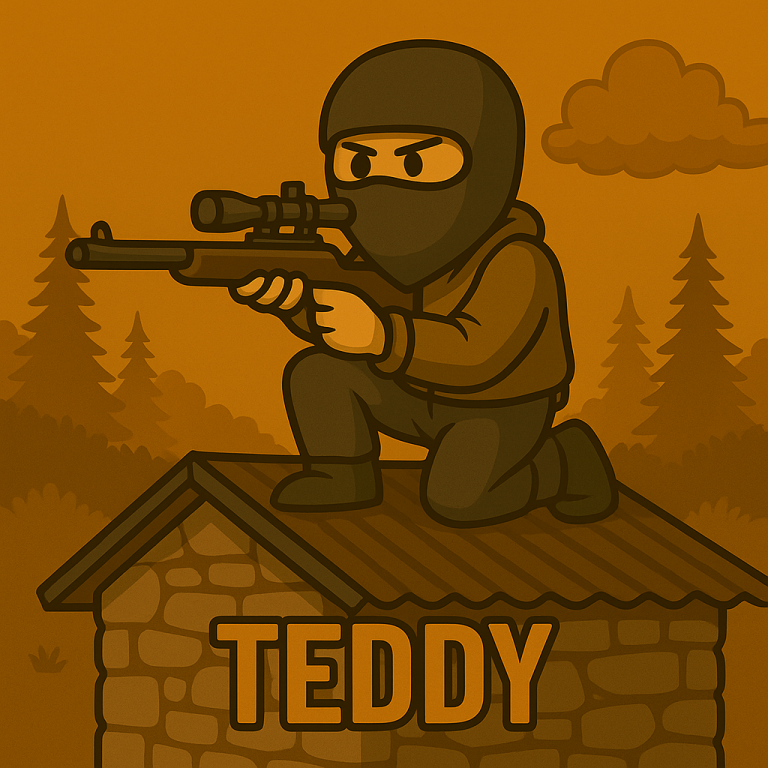 Meet Teddy, the notorious Rust roof camper. Perched high above the chaos, he watches the world burn (and your loot vanish) from his safe haven. Silent, patient, and annoyingly effective, Teddy turns “sniping from above” into an art form. Approach with caution… or just bring snacks and wait—he’s in no hurry.