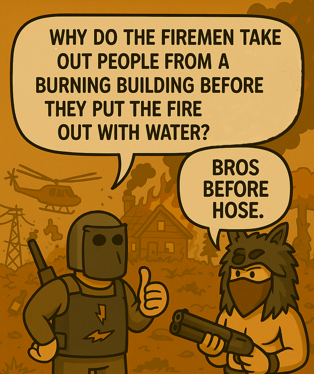Mopsticks has two nighttime hobbies: staying up way too late and leaving every single door wide open like he's trying to air out the base. So when the team raid hits at an ungodly hour, the enemy doesn’t even have to breach — they practically stroll in like customers at a 24/7 convenience store.