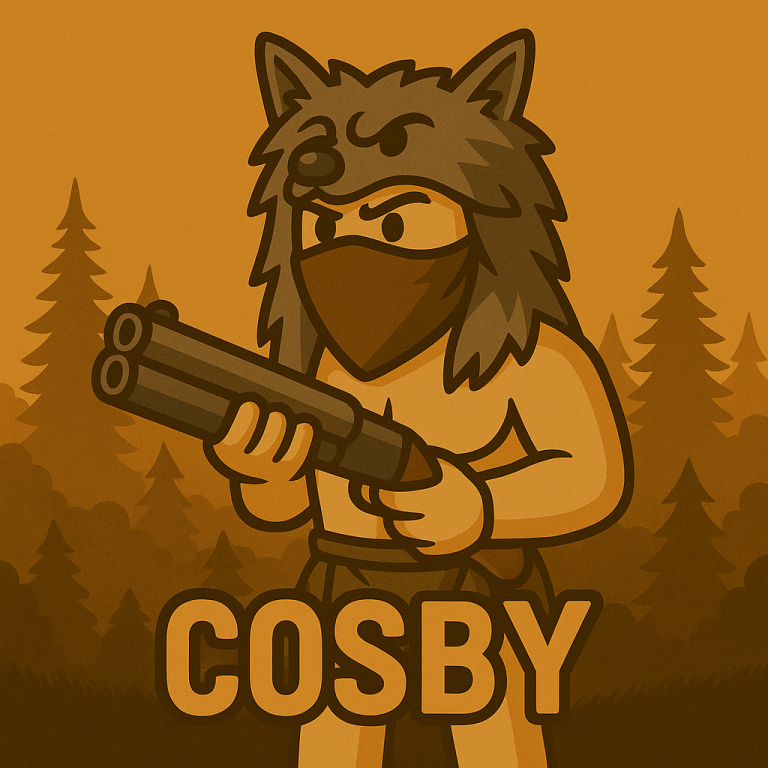 Cosby is that Rust PvPer who plays like he’s got permanent streamer loot but swears he’s “down bad.” He swings wide, crouch-spams like his keyboard owes him money, and somehow wins every fight with 7 HP, no meds, and a bow he “just found on the ground.”